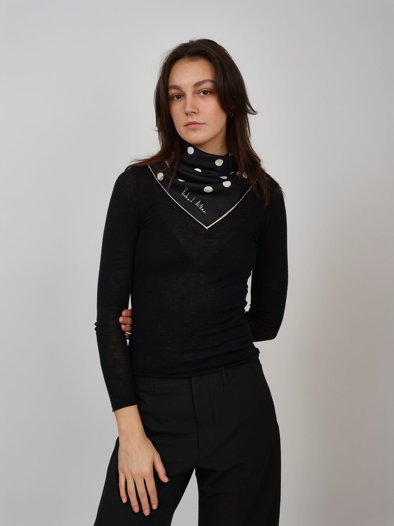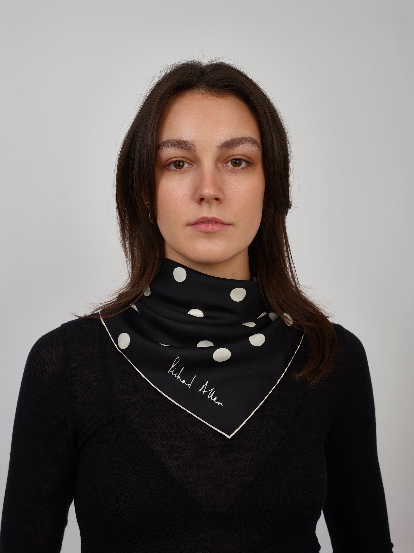 This beautiful little scarf in chic black and white is the perfect accessory for dressing up or down ~ daytime, jeans, workwear or evening, this polka dot scarf has the edge, choose more or less dots in your fold...!